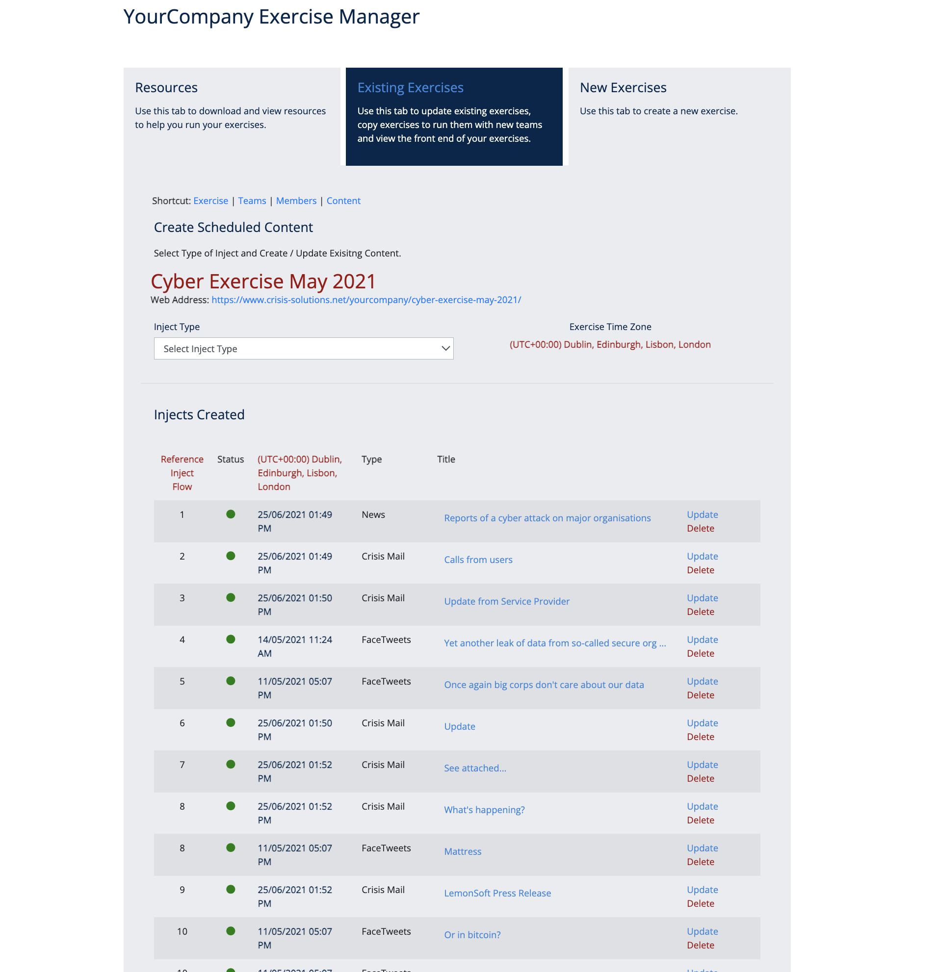 We build your exercise on our crisis exercising portal. On the day we adjust the content and timings to ensure that exercise participants are challeneged approporiately.